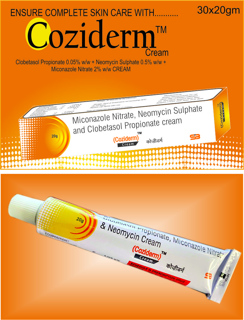 Clobetasol Propionate 0.05% w/w + Neomycin Sulphate 0.5% w/w + Miconazole Nitrate 2% w/w Cream